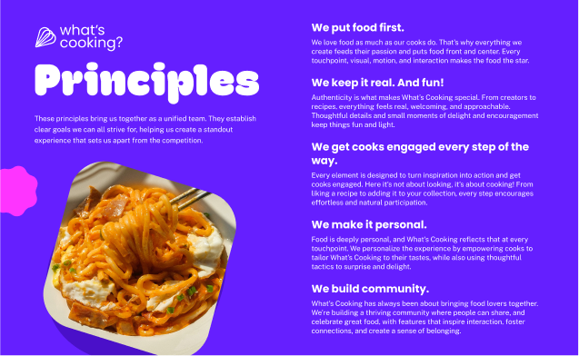 We collaborated with our strategist to define initial Design Principles through a stakeholder workshop. As the product matured, we refined them based on insights to better reflect the app’s current state.